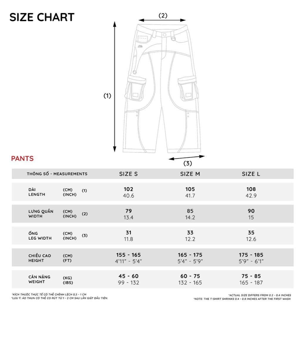 S – אורך 102 ס"מ | רוחב מותן 79 ס"מ | רוחב רגל 31 ס"מ