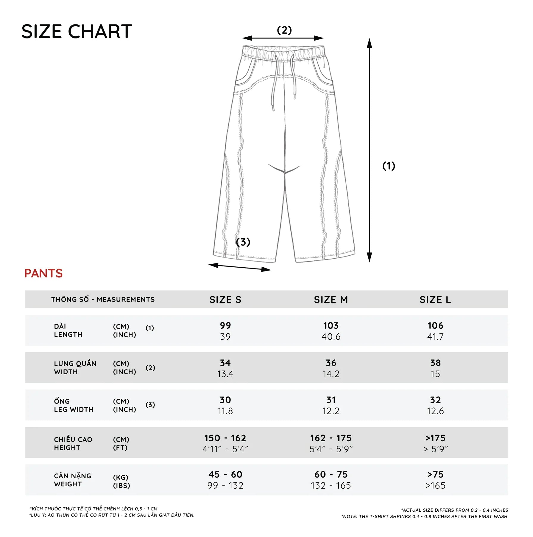 M – אורך 103 ס"מ | רוחב מותן 36 ס"מ | רוחב רגל 31 ס"מ
