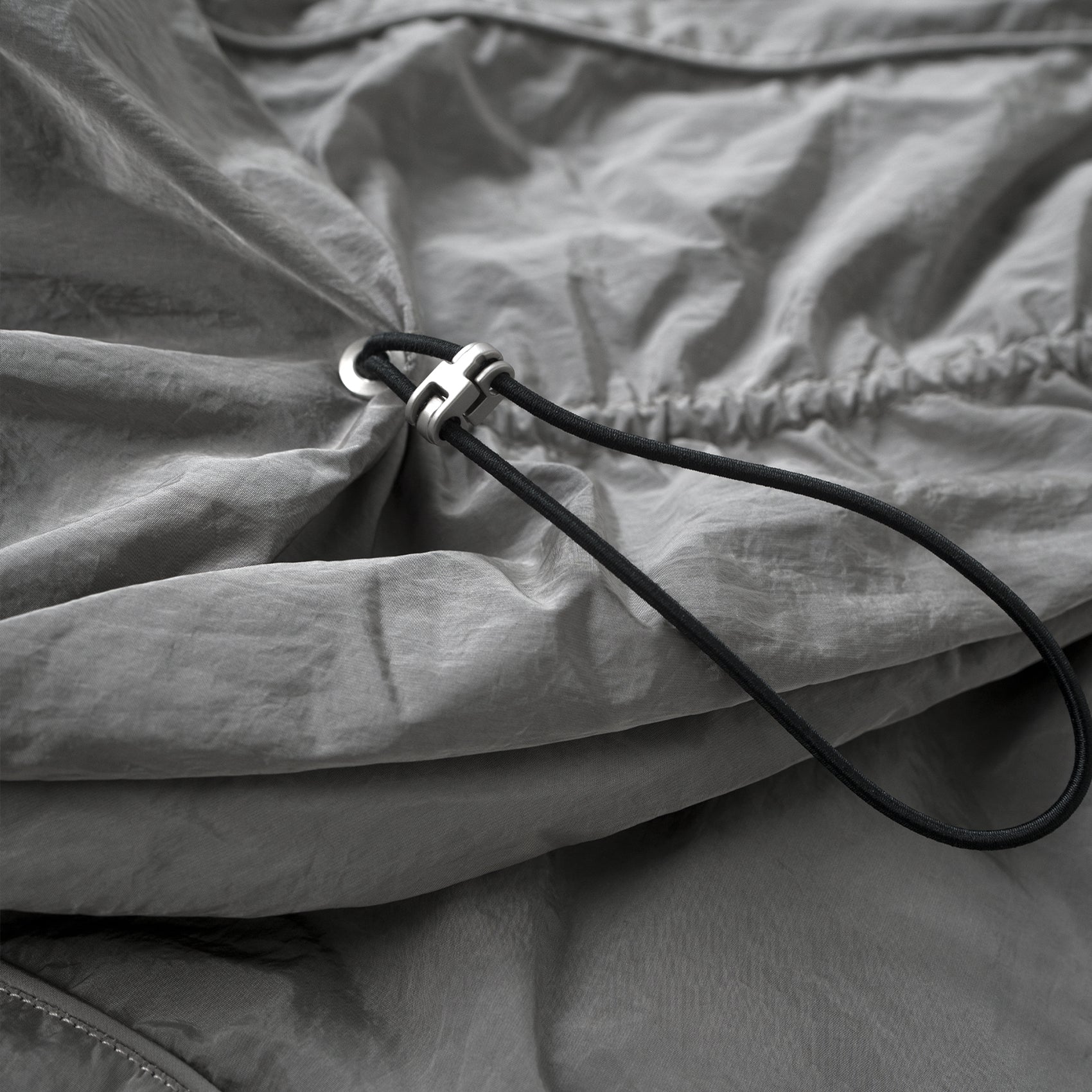 גרסה חדשה של מעיל רוח עשוי מבד ניילון רך עם ברק עדין וליינינג רשת פנימי לנשימה ונוחות מירבית.